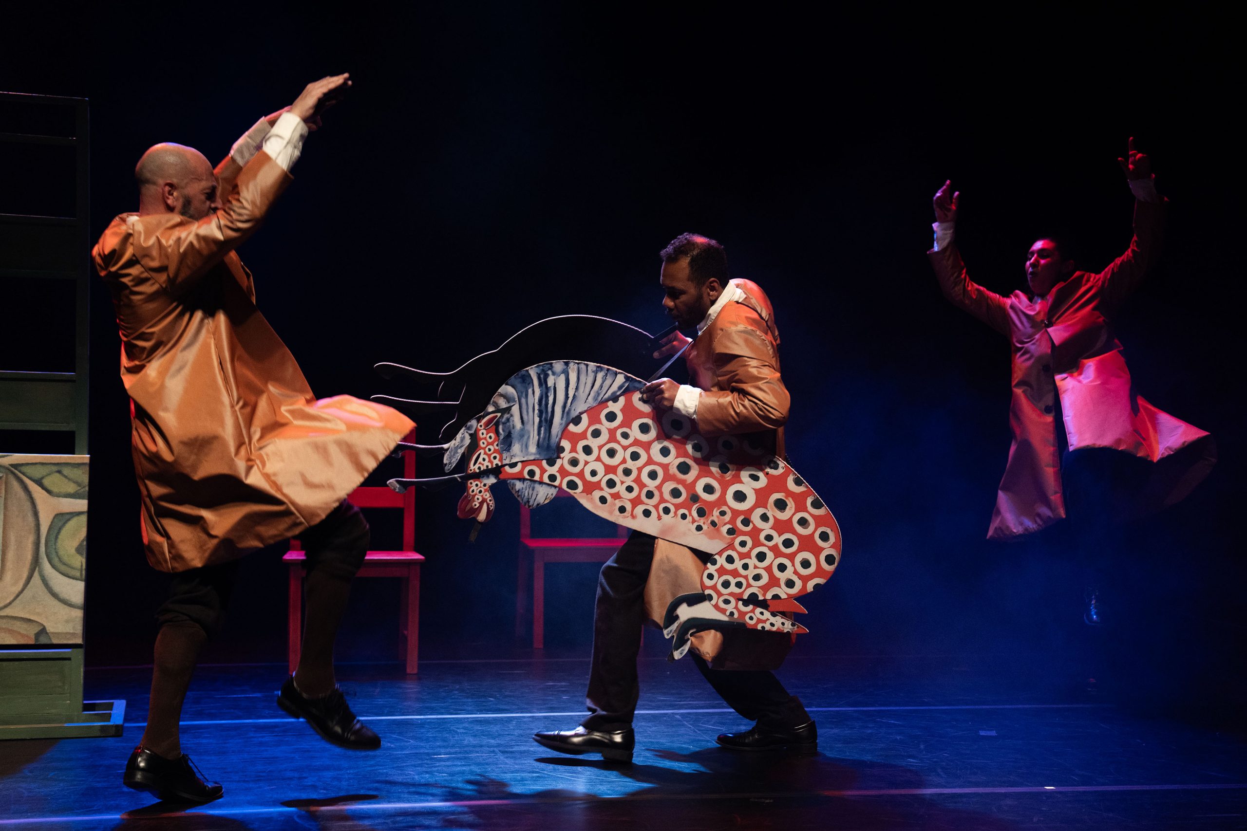 Utilizando uma dramaturgia fragmentada e assente em movimento, expressão corporal e sonoplastia, o espetáculo minimiza o uso do diálogo. É uma homenagem à obra de Amadeo, que ficou “esquecida” por mais de 50 anos em Portugal, e um tributo à sua mulher, Lucie, que a preservou.